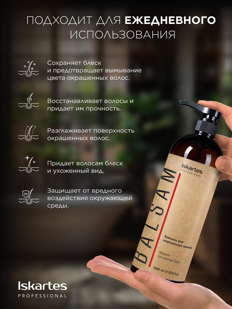 Профессиональный бальзам ISKARTES для окрашенных волос с цвето-защитным комплексом.
