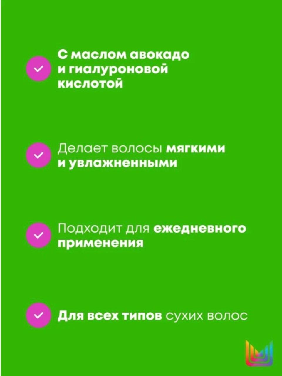 Подходит для всех видов сухих волос, а также для ежедневного применения.