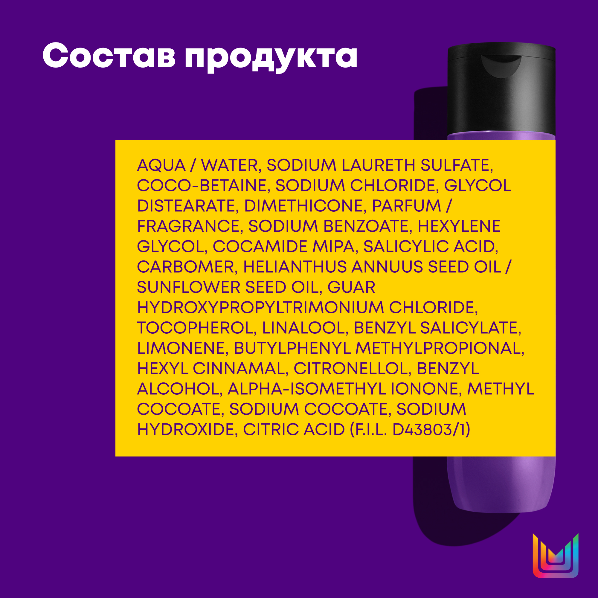 Применение: нанести необходимое количество шампуня на влажные волосы, помассировать 2-3 минуты, затем смыть теплой водой.