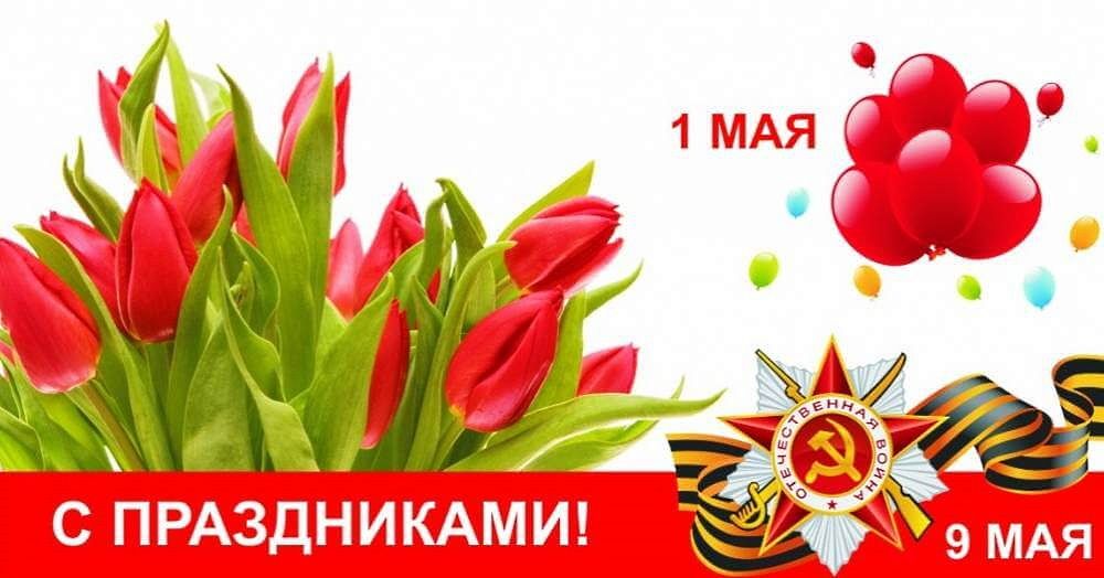 Поздравляем вас с наступающими праздниками 1 мая и 9 мая!